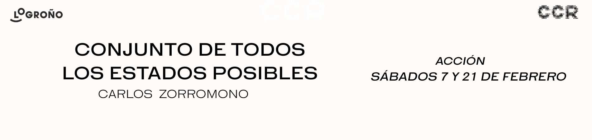 "Conjunto de Todos los Estados Posibles" es una exposición en constante cambio. Ven a participar en el proceso en una visita y acción junto a Carlos Zorromono, en la que los asistentes recorrerán la sala en una visita comentada por el artista y serán partícipes de la transformación de aceite usado en jabón, uno de los materiales clave en la exposición. Durante la acción, la sala se transformará en el taller del artista y los asistentes podrán participar activamente en la creación, contribuyendo a invadir el espacio con su obra. El pago de la entrada a la exposición (3€) se efectuará en el CCR y las personas que traigan aceite usado podrán acceder de forma gratuita.